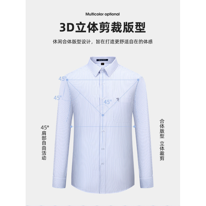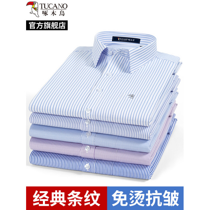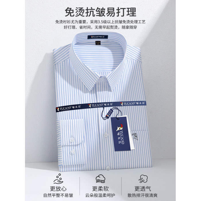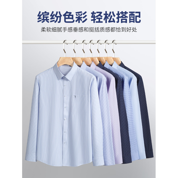 啄木鳥條紋襯衫男士長袖2025春夏爸爸商務中年裝免燙抗皺工裝襯衣