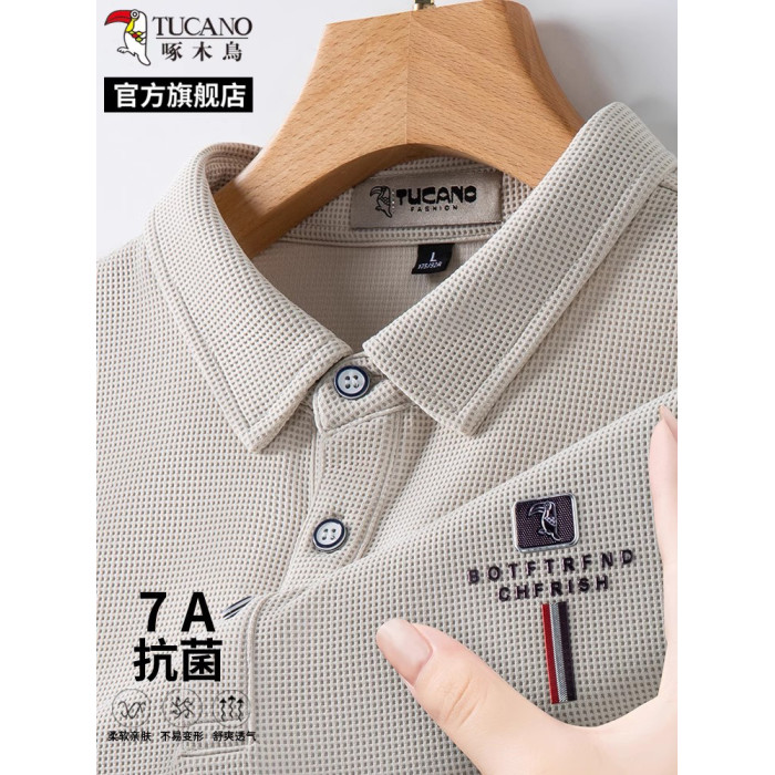 【7A抗菌】啄木鳥華夫格短袖t恤男夏季涼感半袖翻領POLO衫上衣服H