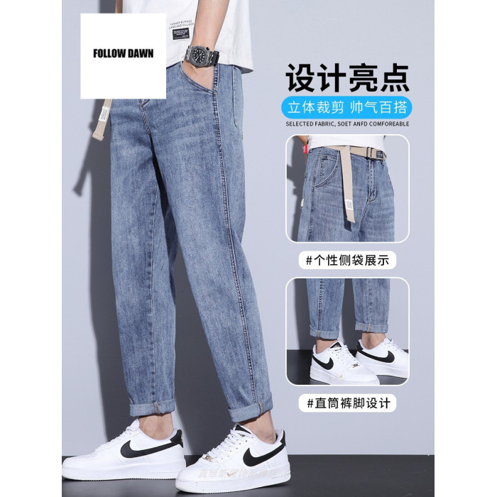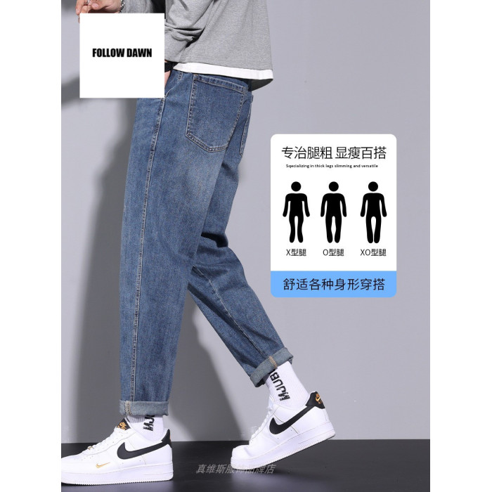 牛仔褲男寬松直筒潮牌春秋休閒夏季薄款九分長褲子2025新款