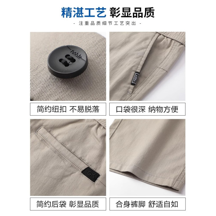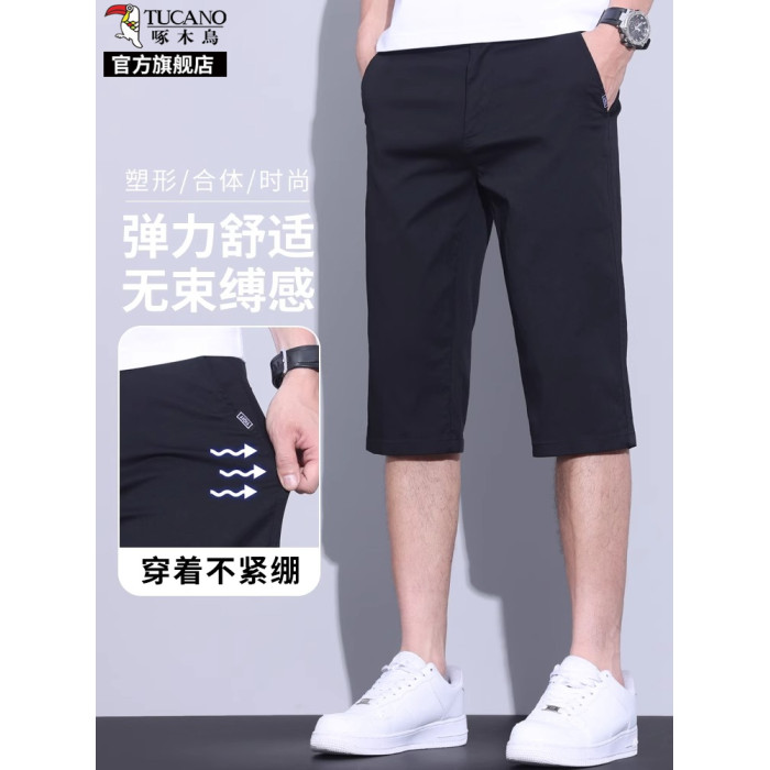啄木鳥冰絲休閒短褲男士七分褲子夏季2025新款寬松力直筒彈中褲K