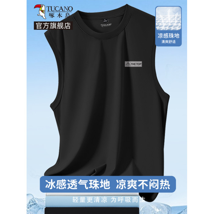 啄木鳥速乾背心男款夏季冰絲透氣寬松無袖t恤男生籃球健身運動服Y