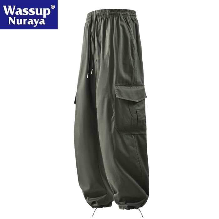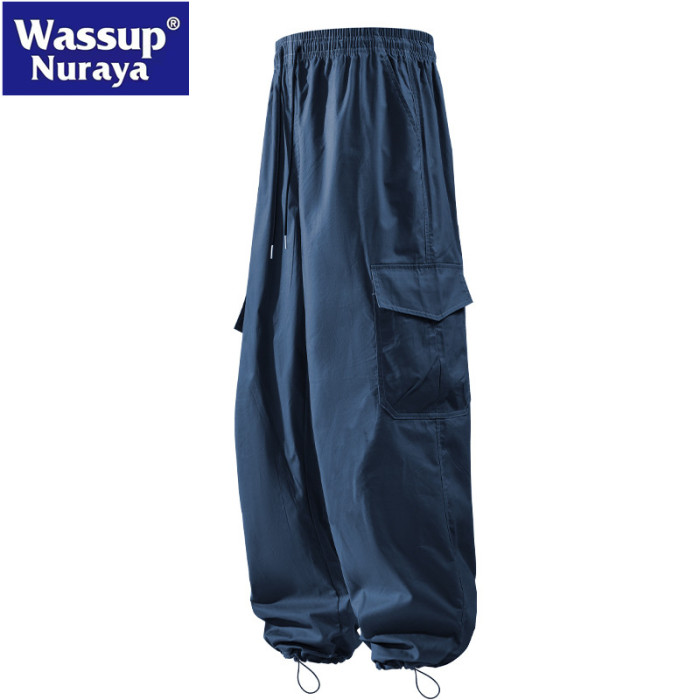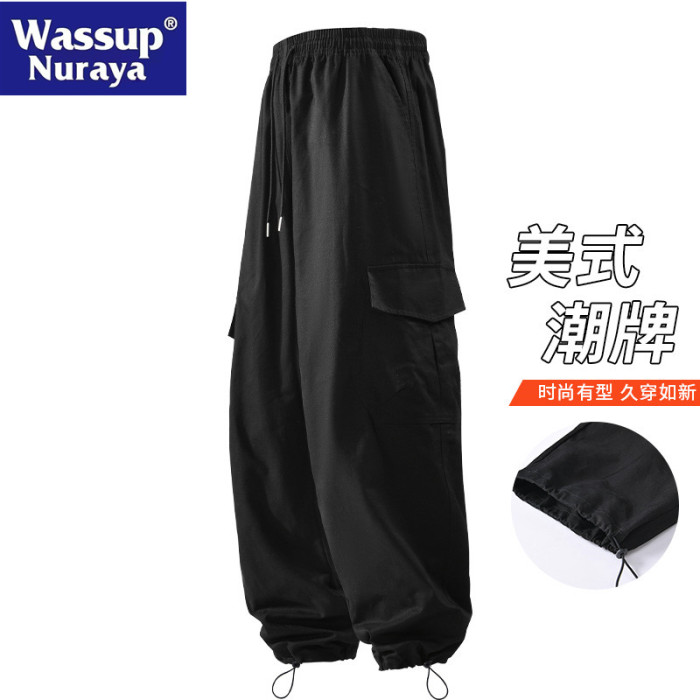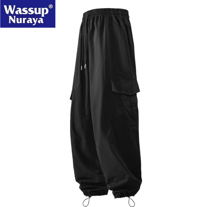 WASSUP Nuraya潮牌工裝褲男抽繩松緊復古日系寬松濶腿百搭休閒褲