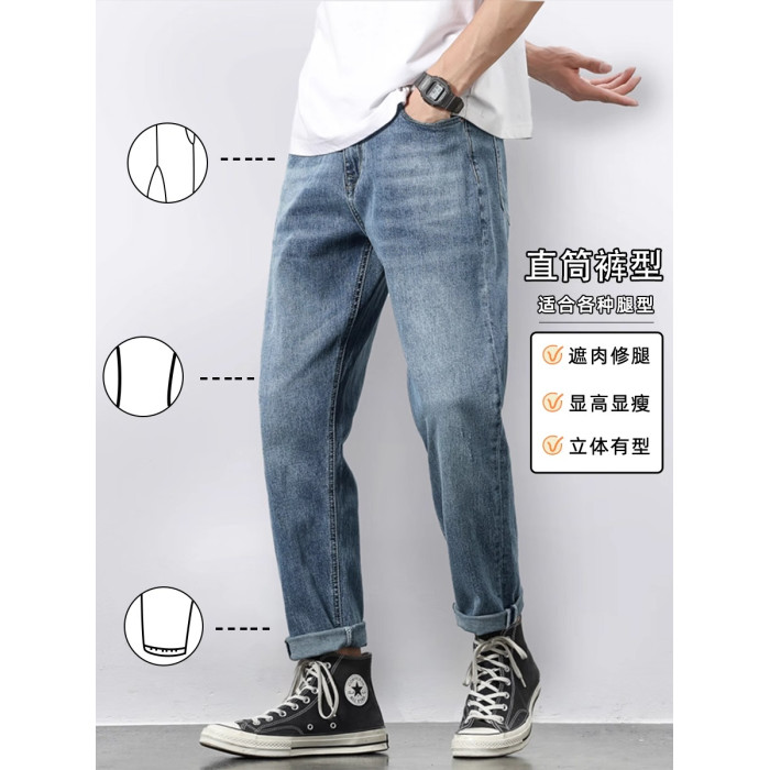 牛仔褲男士寬松直筒潮牌2025新款潮流春秋季九分休閒長褲子潮