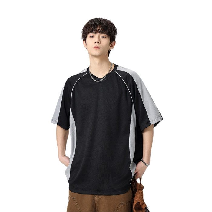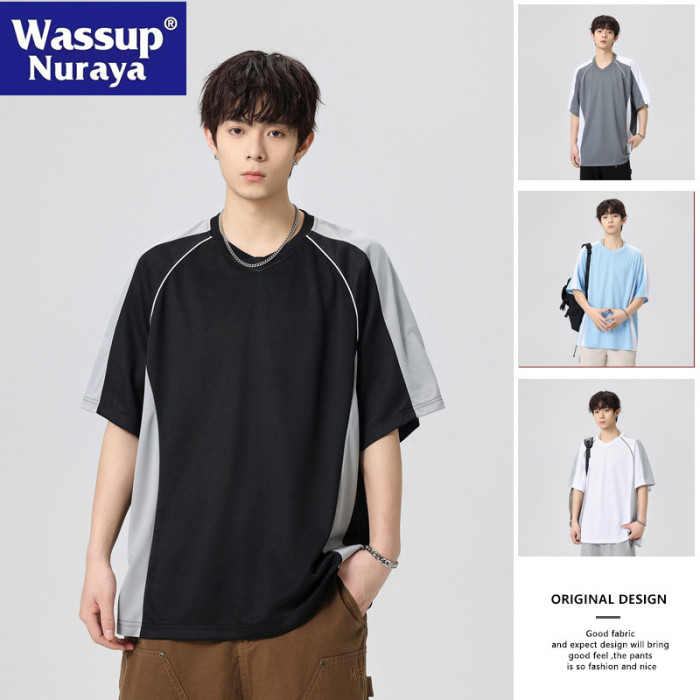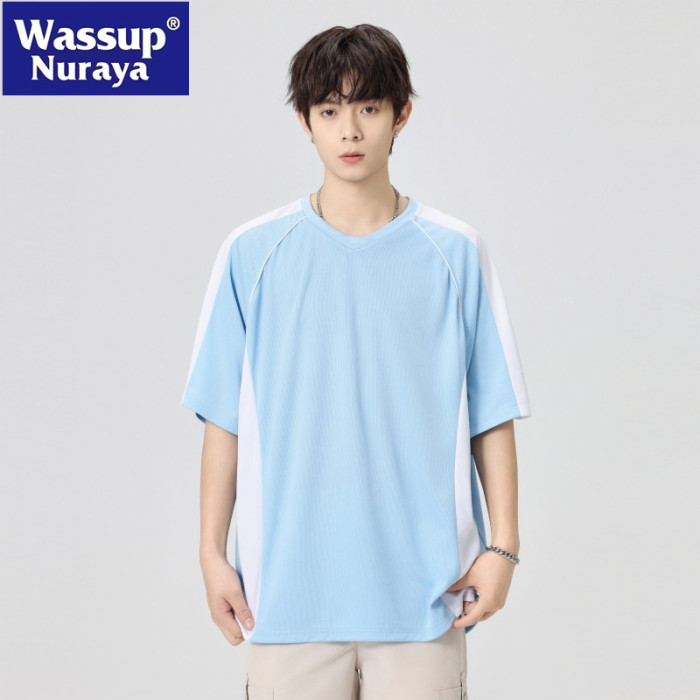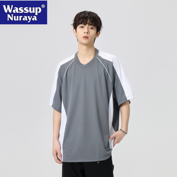 WASSUP NURAYA短袖t恤男士夏2025新款潮寬松運動休閒速乾V領半袖
