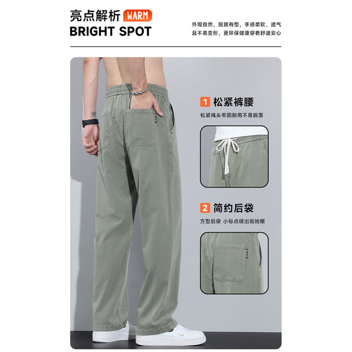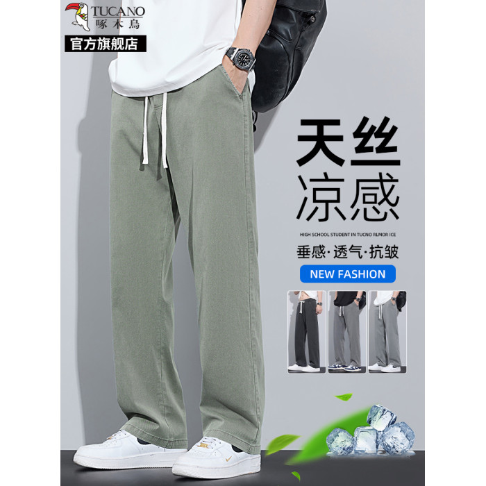 啄木鳥天絲休閒褲男款夏季薄款2025新款寬松直筒冰絲牛仔褲子男K