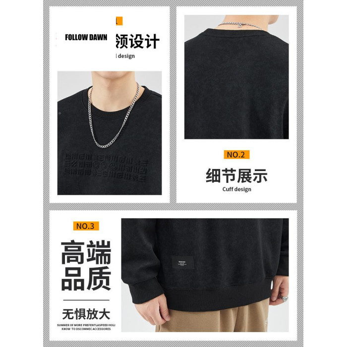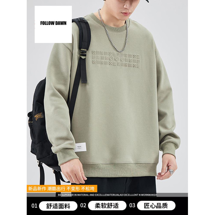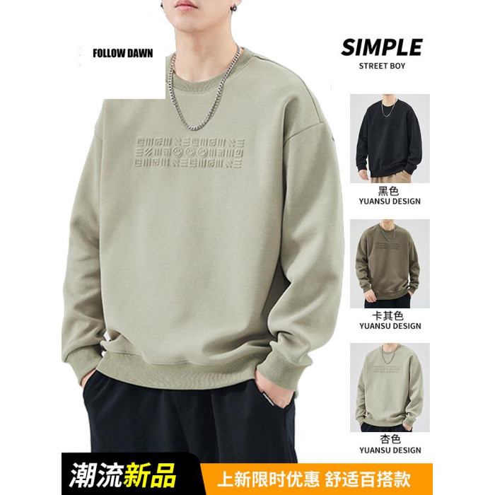 潮牌圓領衛衣男士休閒百搭春秋季新款寬松潮流提花上衣男