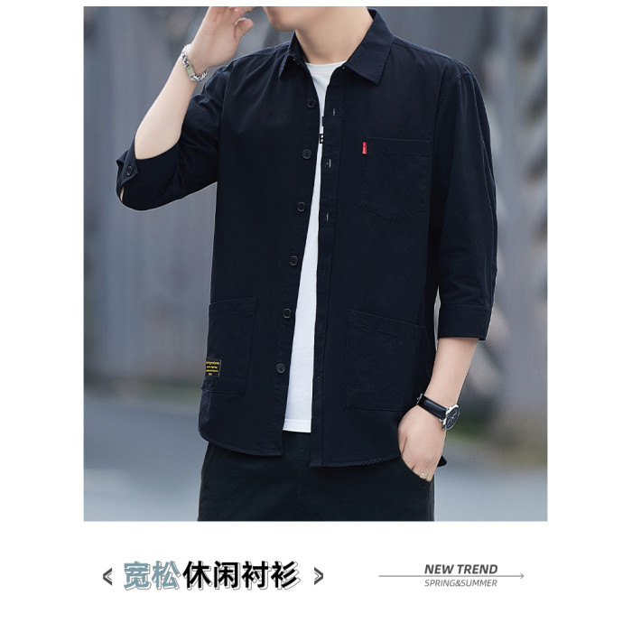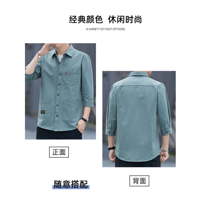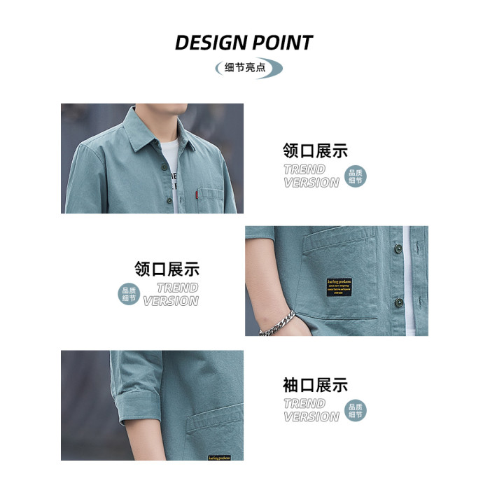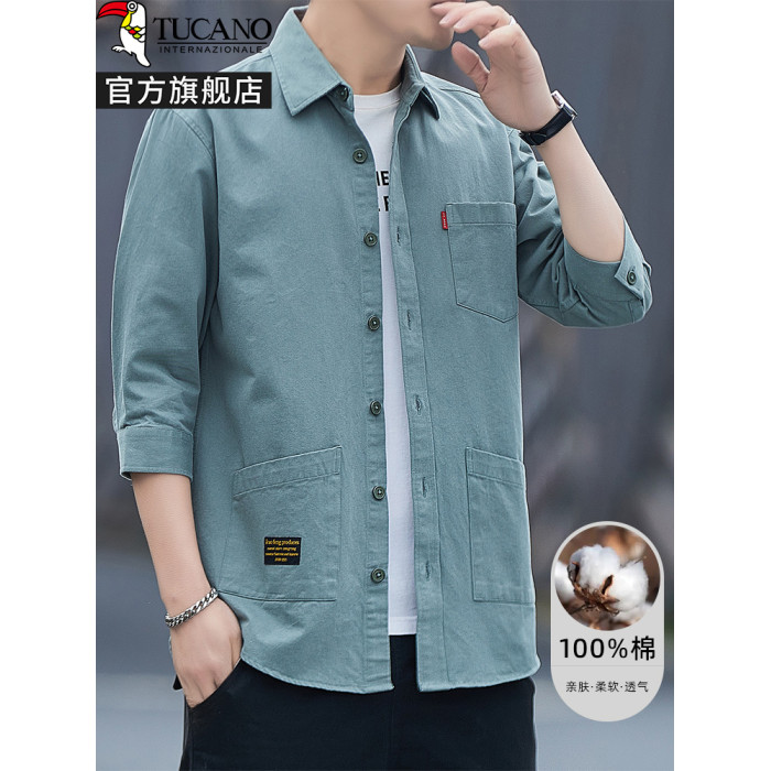 啄木鳥100%全棉襯衫短袖男長袖男士純棉休閒襯衣工裝外套潮春秋季