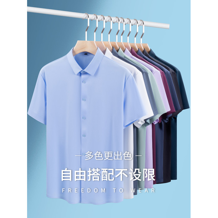 【無痕冰絲高彈】啄木鳥襯衫短袖男士夏季商務休閒高級感抗皺襯衣
