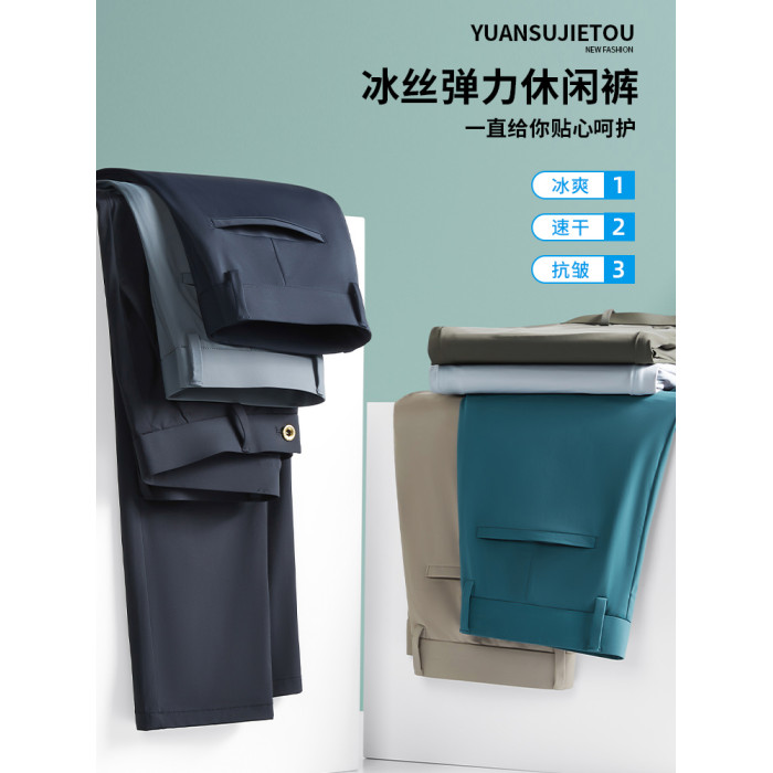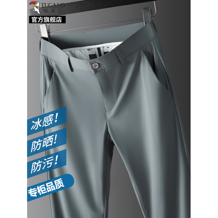 啄木鳥男士冰絲休閒褲夏季薄款2025新款寬松商務西褲子直筒男褲K