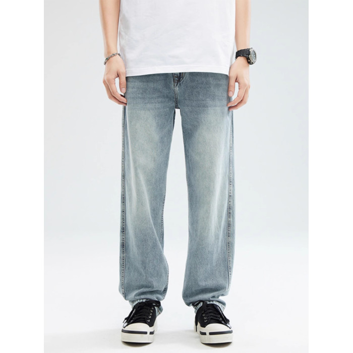 淺藍色牛仔褲男夏季2025新款美式潮牌水洗直筒寬松休閒長褲