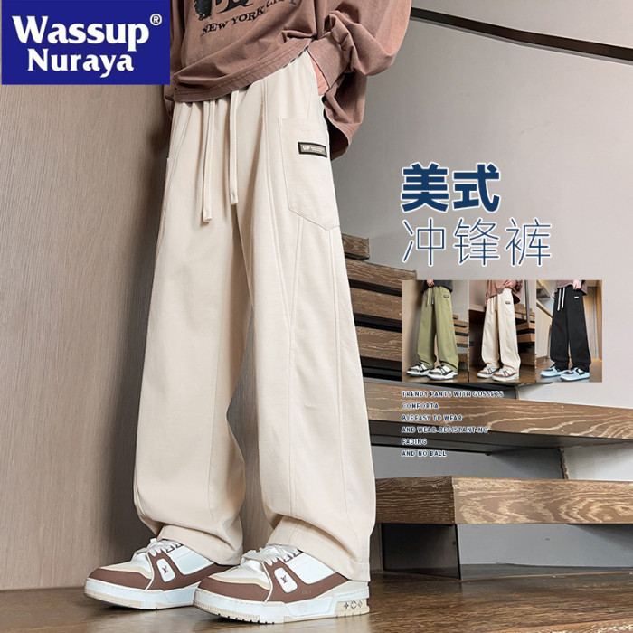 WASSUP NURAYA直筒工裝褲男春秋美式濶腿長褲潮牌青年百搭休閒褲