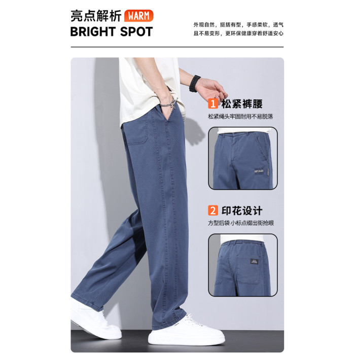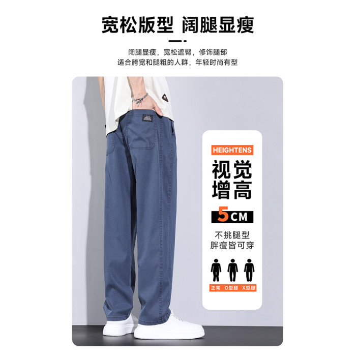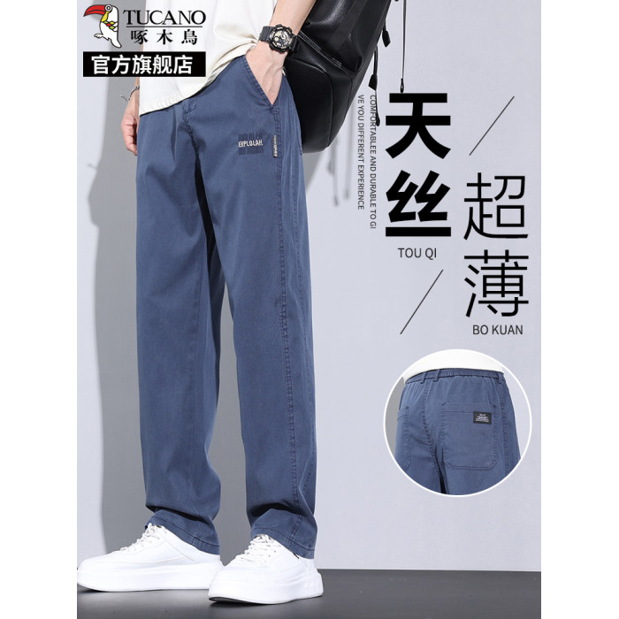 啄木鳥休閒褲男士冰絲褲子夏季薄款2025新款寬松直筒天絲牛仔褲K