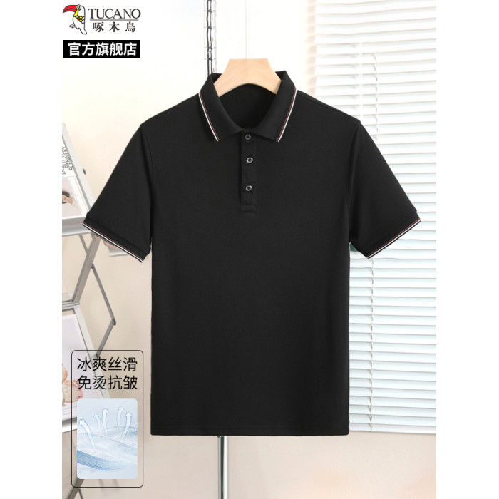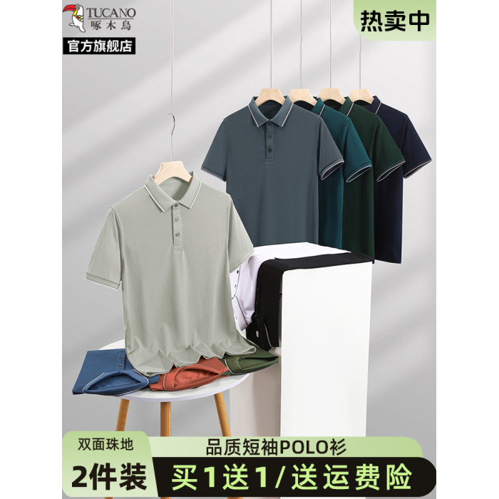 啄木鳥官方爸爸短袖t恤中年男士2025新款夏季商務翻領polo衫上衣