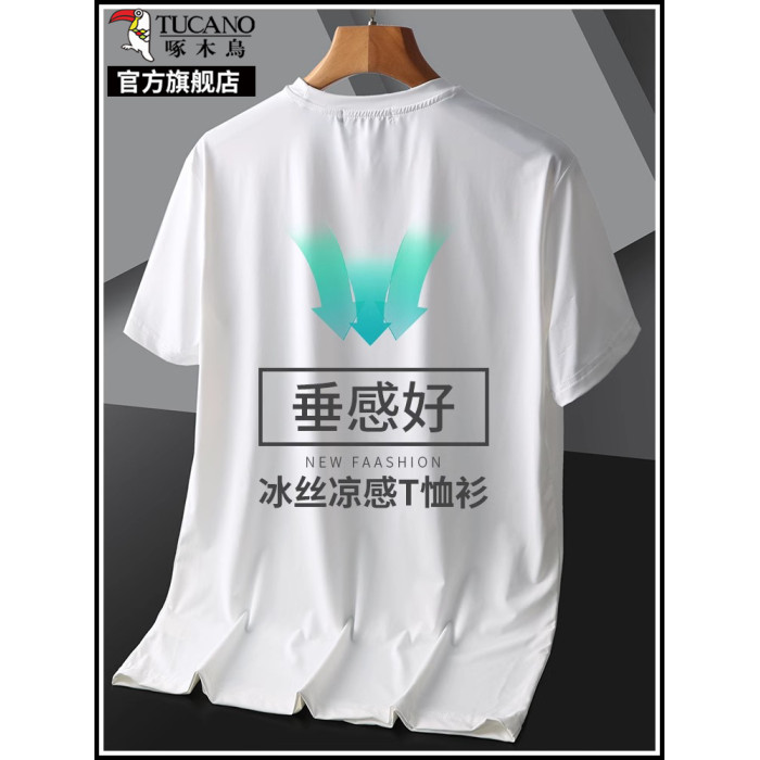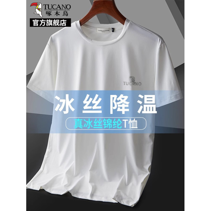 啄木鳥冰絲t恤男士短袖2025夏季薄款運動速乾白色男款半袖上衣服K