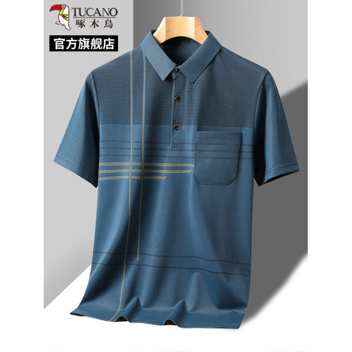 啄木鳥短袖男士口袋款polo衫夏裝大碼冰絲透氣薄款t恤爸爸裝上衣C