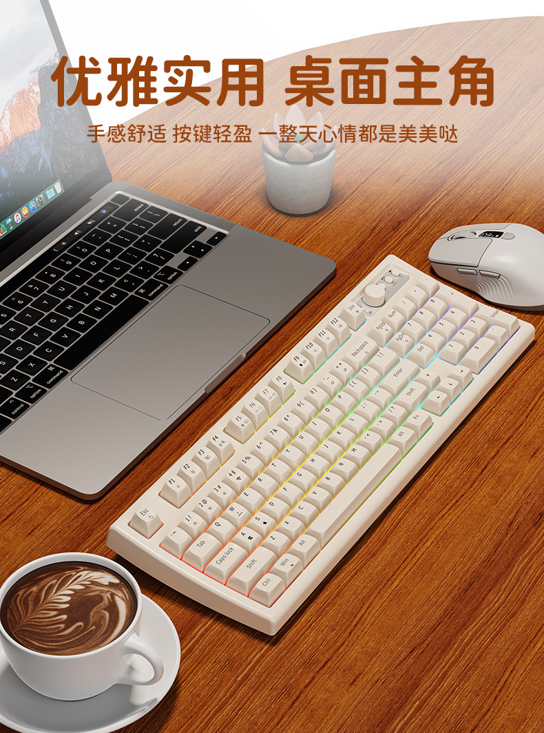 【鍵鼠套裝】v97-茶方小白【2.4G+藍牙】