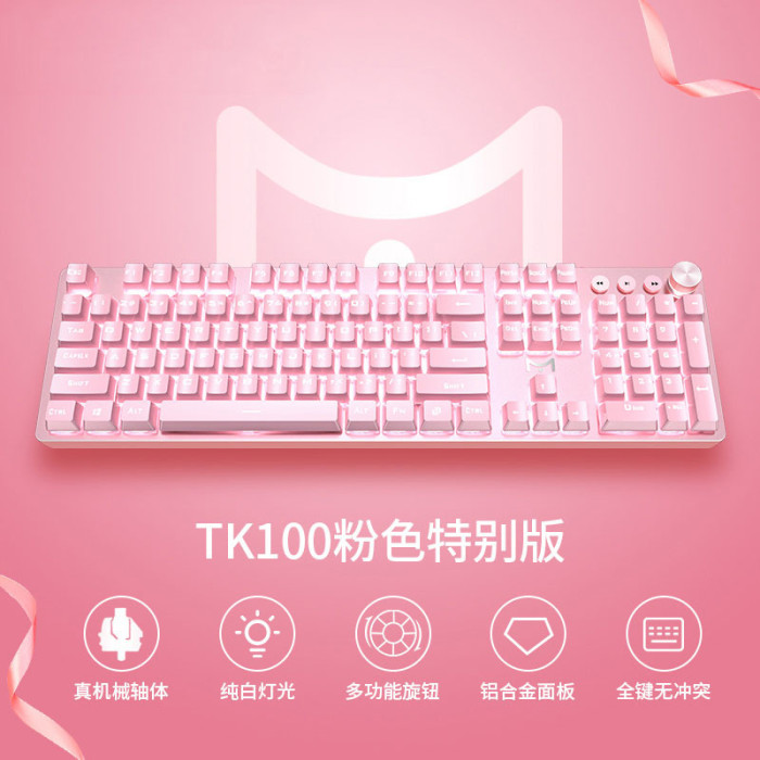 顔色 | 有線櫻花粉白光黑軸【旋鈕旗艦版】+有線鼠標+有線耳機 |