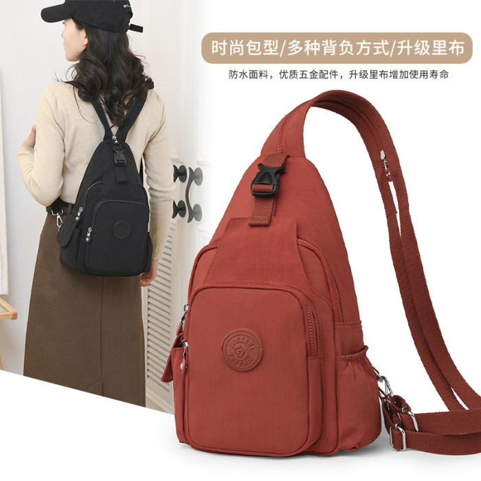 大容量通勤單肩包休閒出行胸包輕便防水尼龍布包多功能女士雙肩包