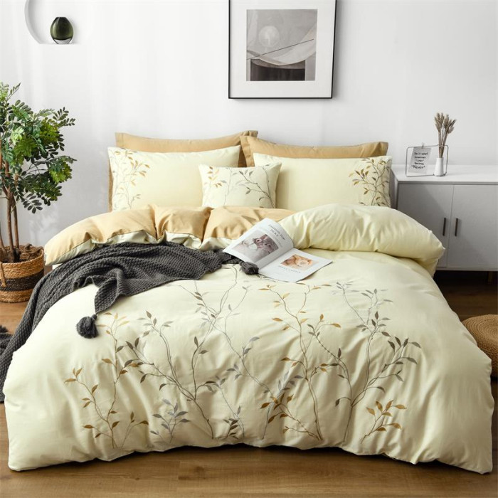 新款上市!出口刺綉純棉被套四件套100%全棉厚實斜紋被罩床品