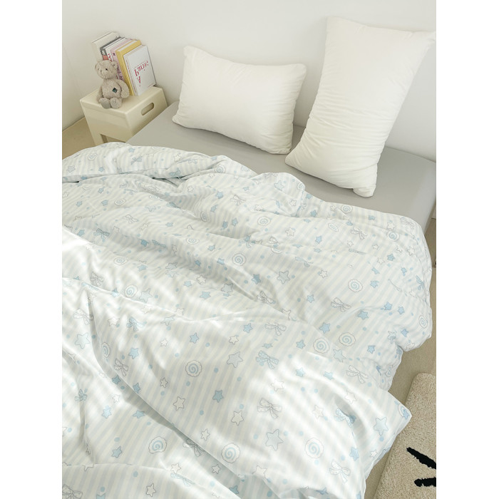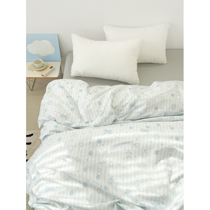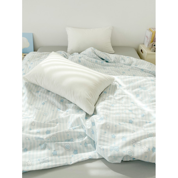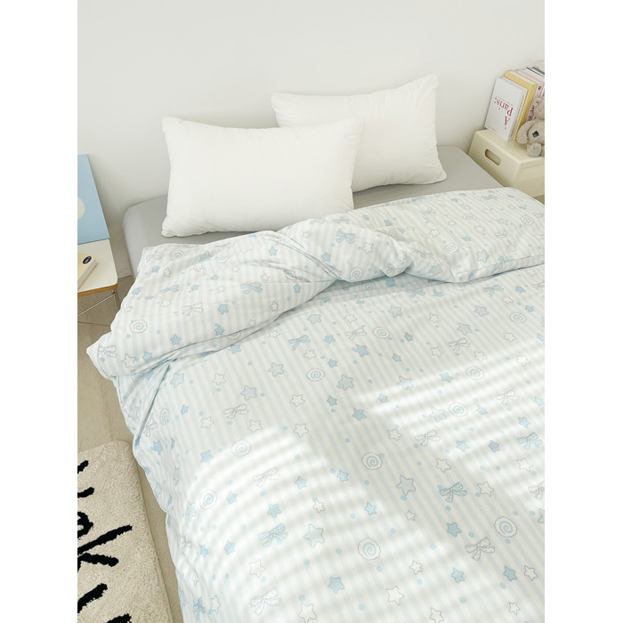 海鹽物語 可愛藍色條紋全棉被套被芯罩100純棉150x200單件少女系