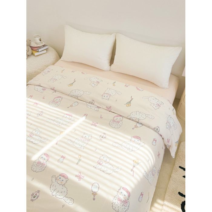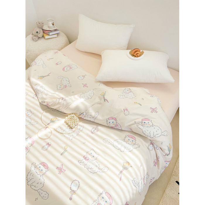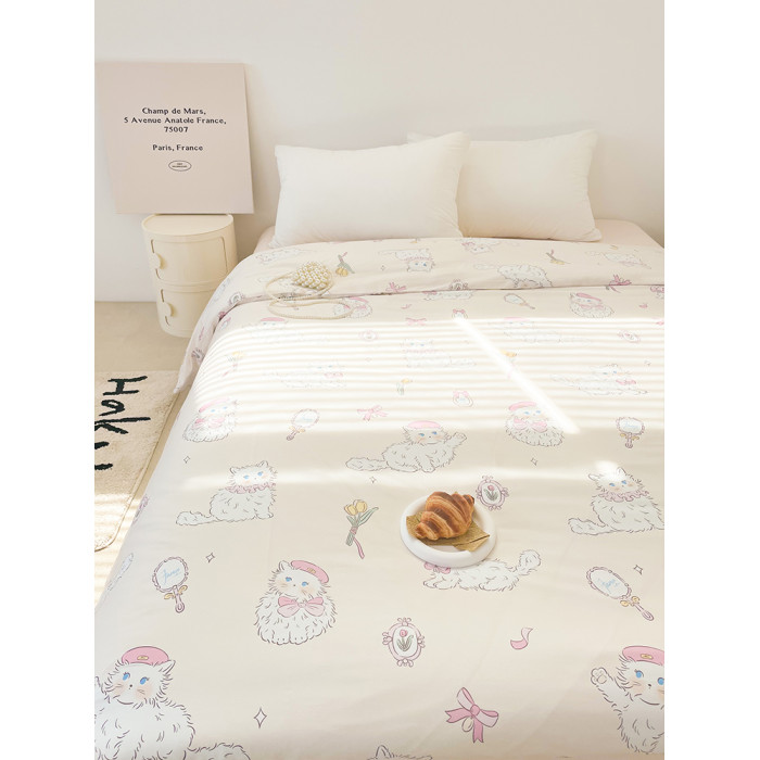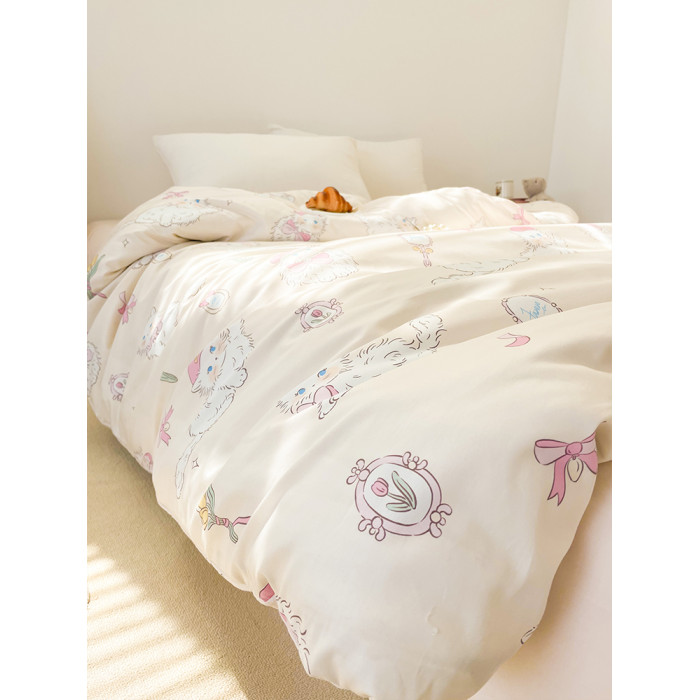 桃桃貓醬 原創小貓粉色全棉被套純棉四季款被芯罩被單可愛學生床