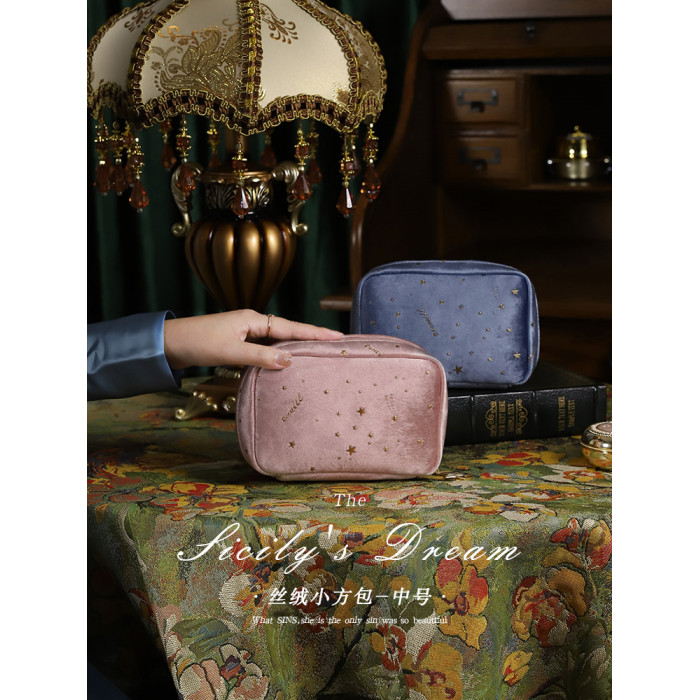 絲羢小方包-小號藍色