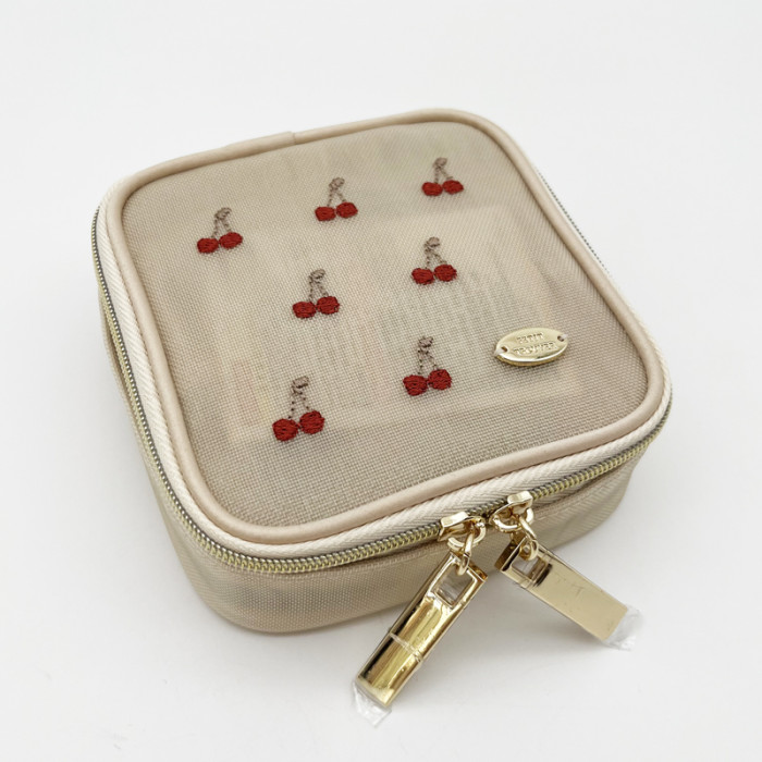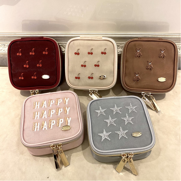 PETIT TROUVER可愛刺綉小熊櫻桃星星襍物收納包 方形迷你化妝包