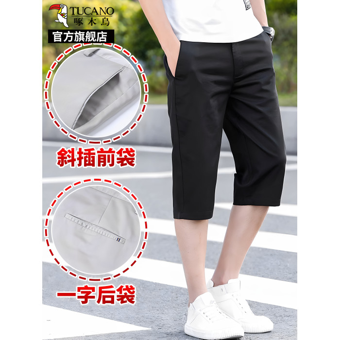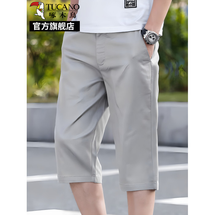啄木鳥冰絲休閒短褲男士七分褲夏季2025新款彈力中年商務褲子K