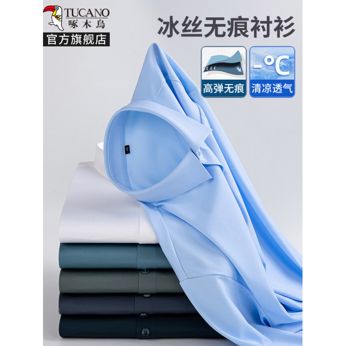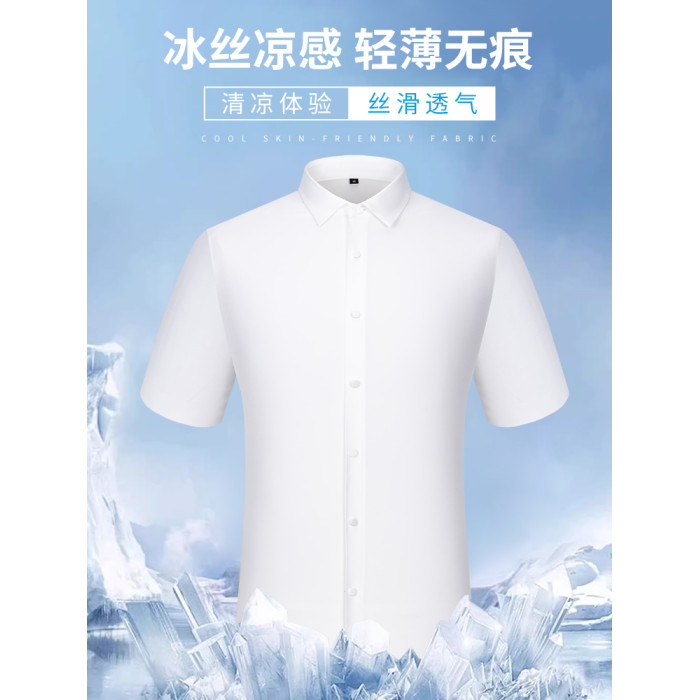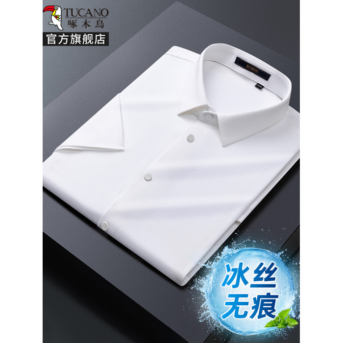 【冰絲無痕】啄木鳥襯衫男短袖夏季免燙抗皺高級商務正裝職業襯衣