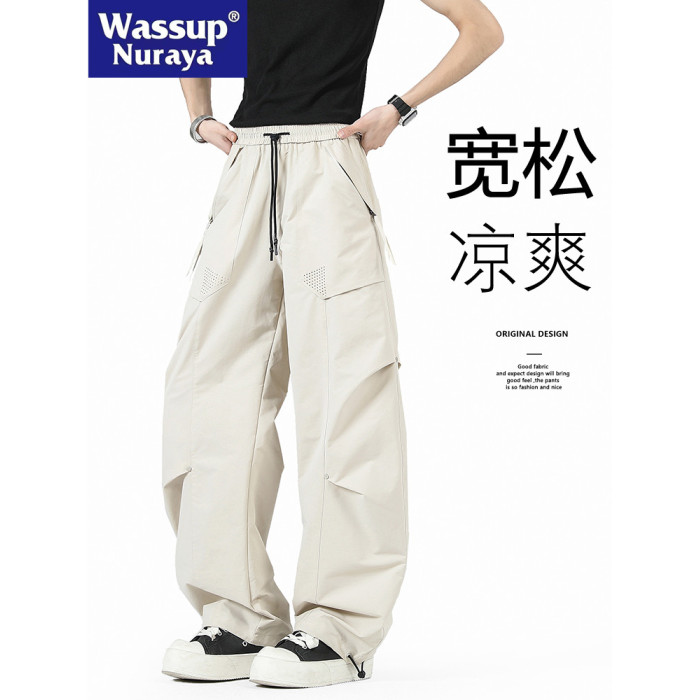 WASSUP NURAYA日系復古褶皺彎刀工裝褲男春夏寬松痞帥濶腿休閒褲