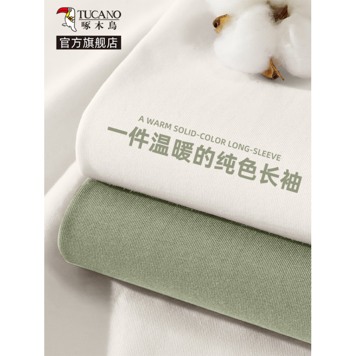 啄木鳥基礎款純棉打底衫男春秋寬松圓領長袖t恤男士純色內搭衣服Y