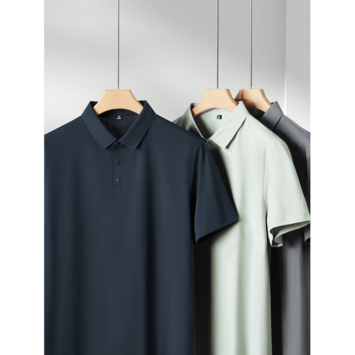 短袖POLO衫T恤2025夏薄款抗皺涼感透氣中年商務休閒冰肌冰感速乾