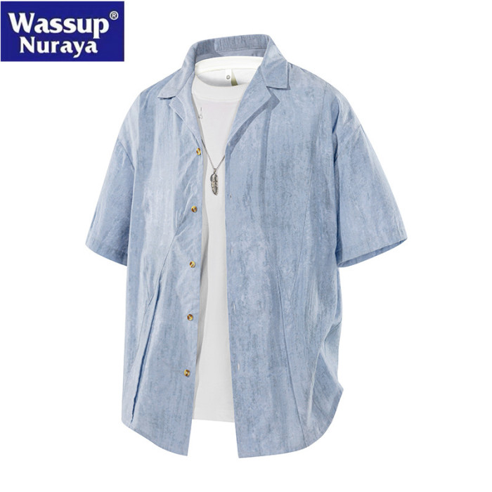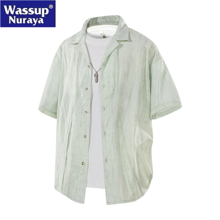 WASSUP Nuraya潮牌古巴領襯衫男士夏季薄款冰絲短袖上衣提花外套