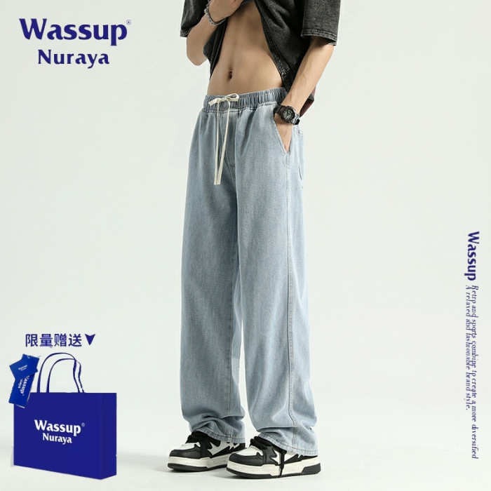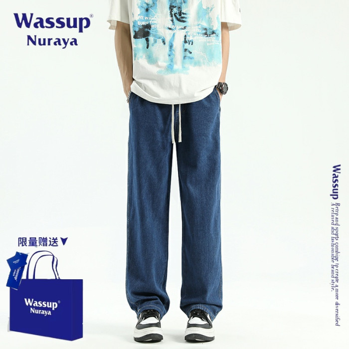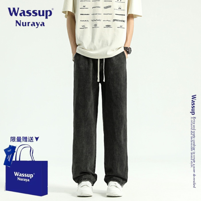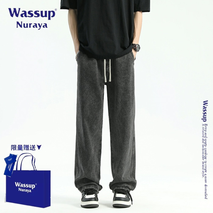 WASSUP NURAYA美式高街潮牌水洗牛仔褲男秋季新款直筒寬松長褲子