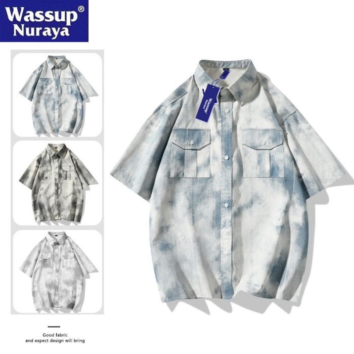 WASSUP Nuraya潮牌紥染短袖襯衫男設計感小衆夏季高級感痞帥襯衣