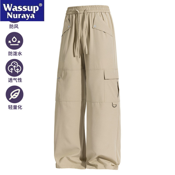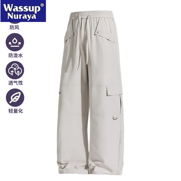 WASSUP Nuraya潮牌山系戶外沖鋒褲男春秋薄款寬松直筒情侶工裝褲