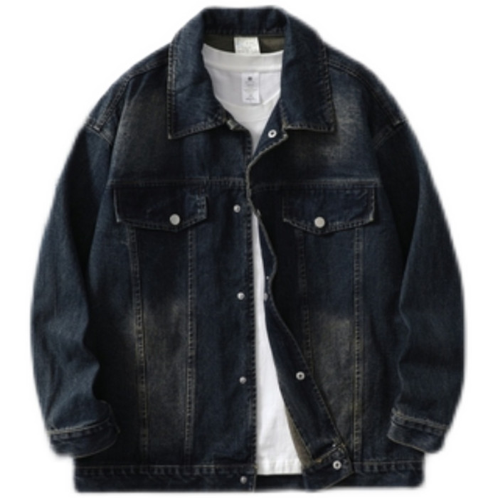 WASSUP NURAYA復古牛仔夾克男春秋翻領帥氣上衣青年寬松休閒外套
