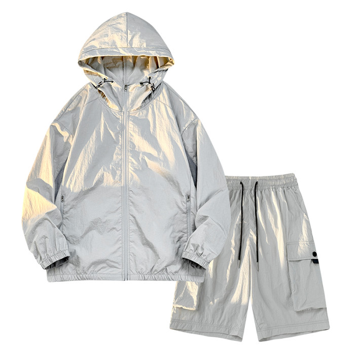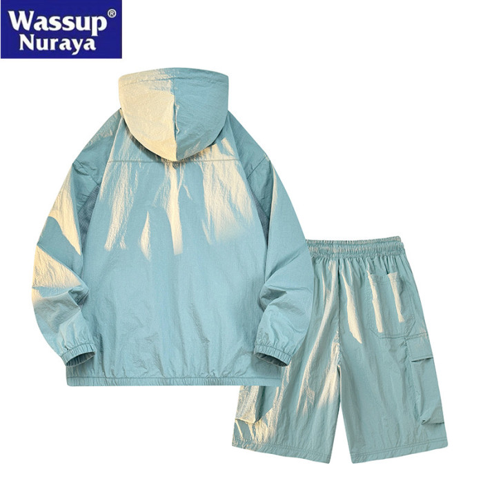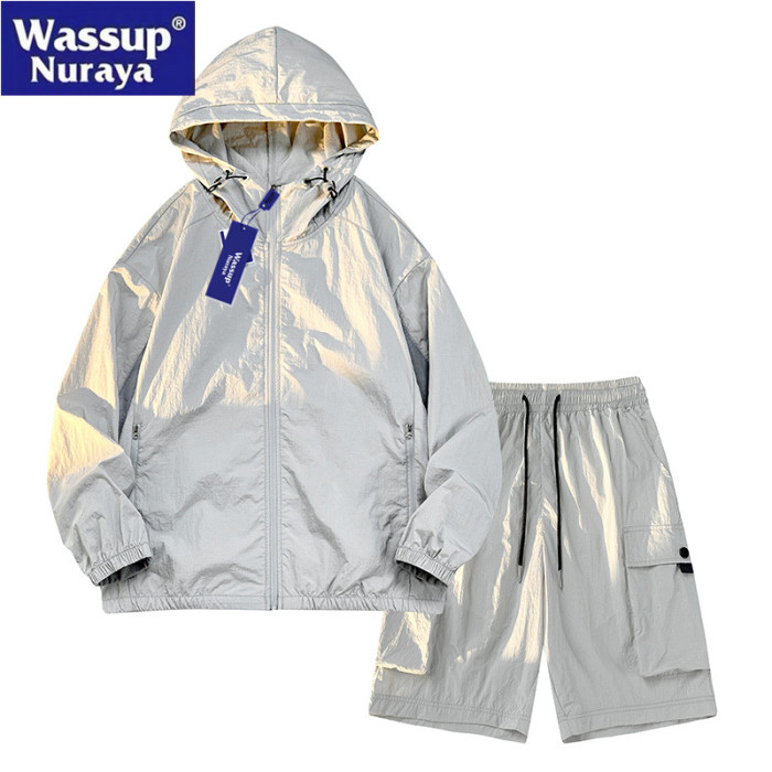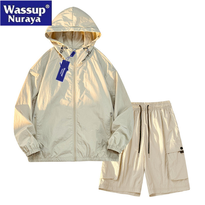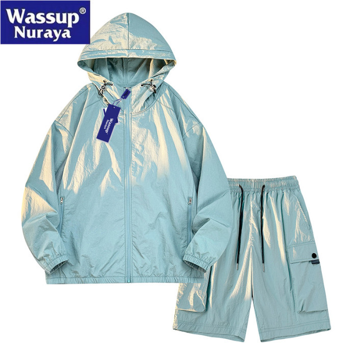 WASSUP Nuraya潮牌冰絲防曬衣套裝男休閒運動夏季帥氣短褲兩件套