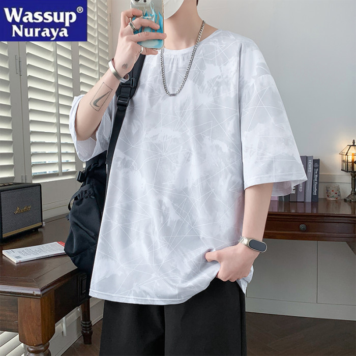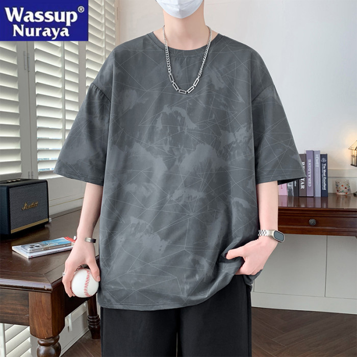 WASSUP NURAYA涼感短袖T恤男夏季冰絲體恤衫寬松半袖速乾上衣服男