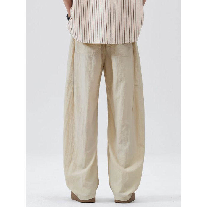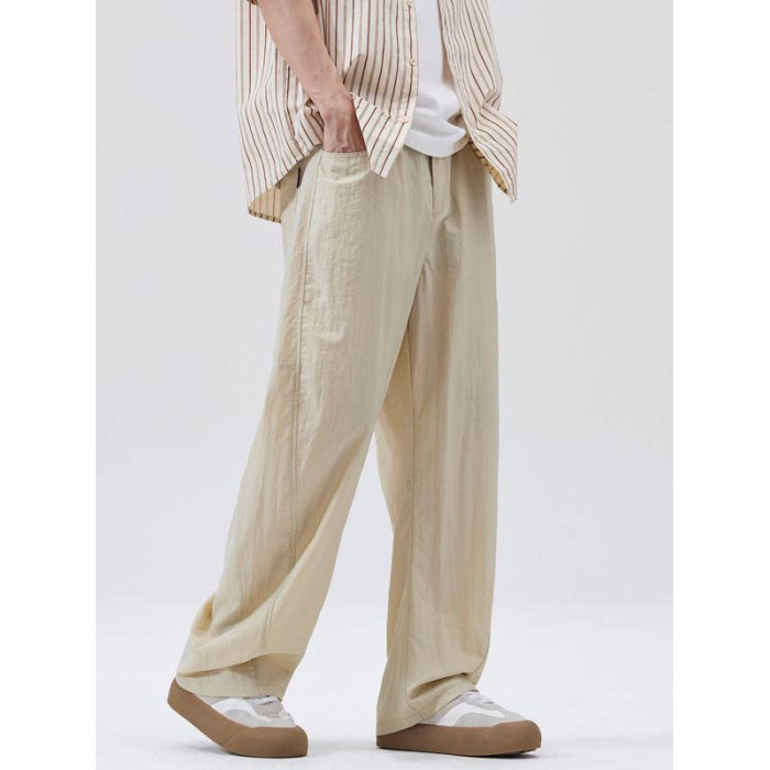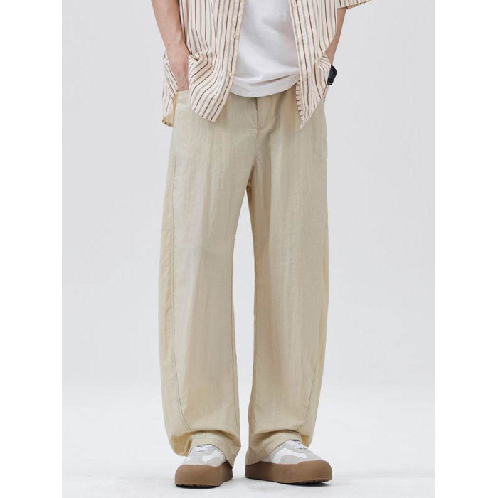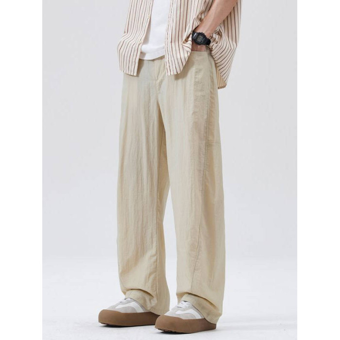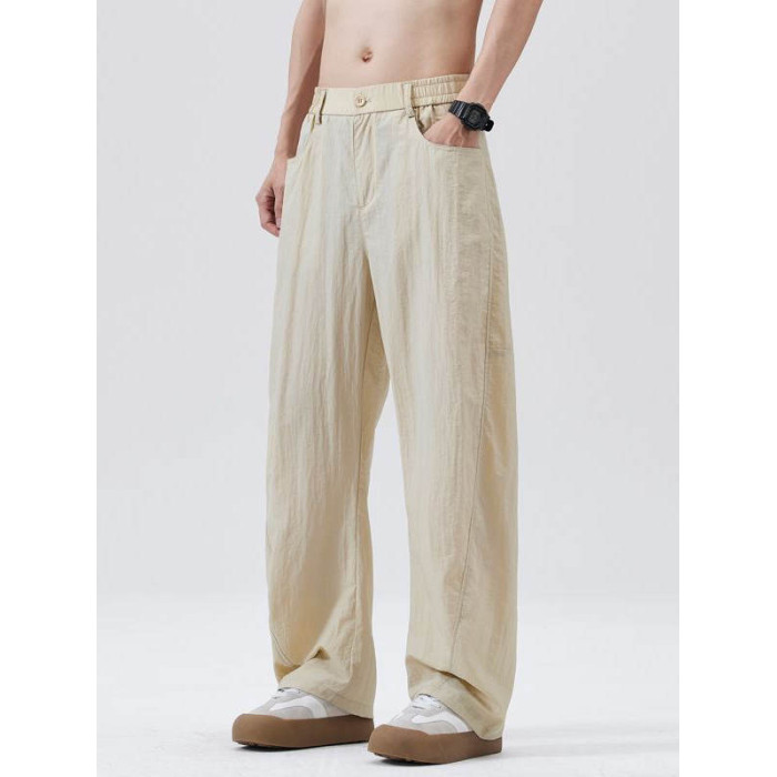 2025美式復古濶腿冰絲彎刀休閒褲男款寬松直筒運動長褲子夏季