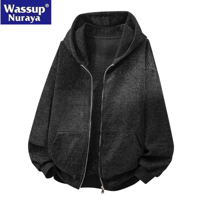 WASSUP Nuraya潮牌星空紋衛衣外套男春秋美式復古重磅連帽衫夾克