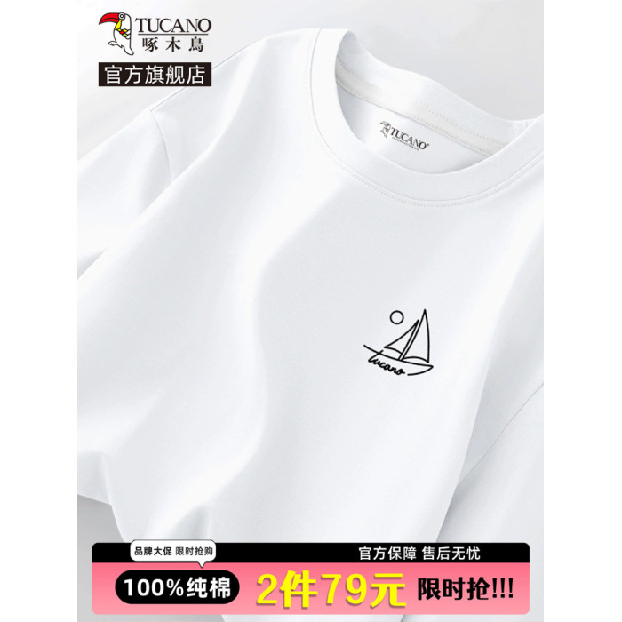 啄木鳥小帆船t恤男長袖秋季純棉圓領內搭體恤男士打底衫秋裝衣服Y
