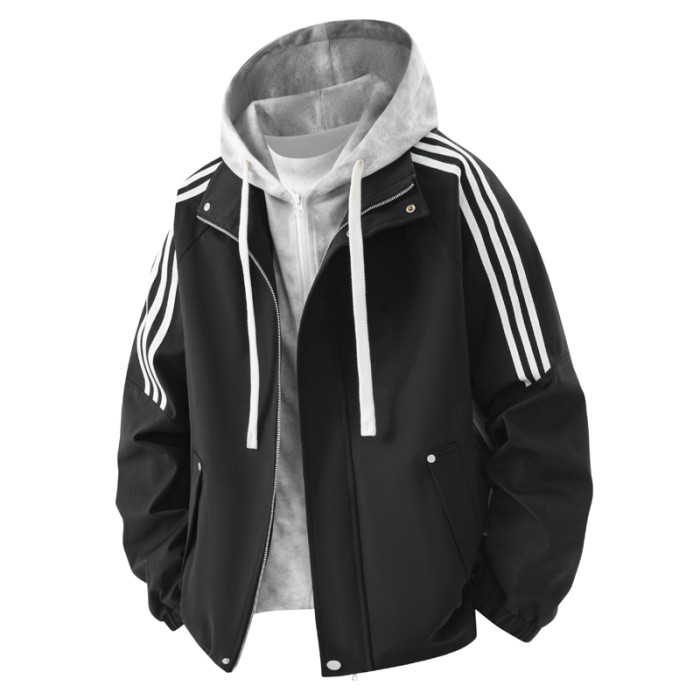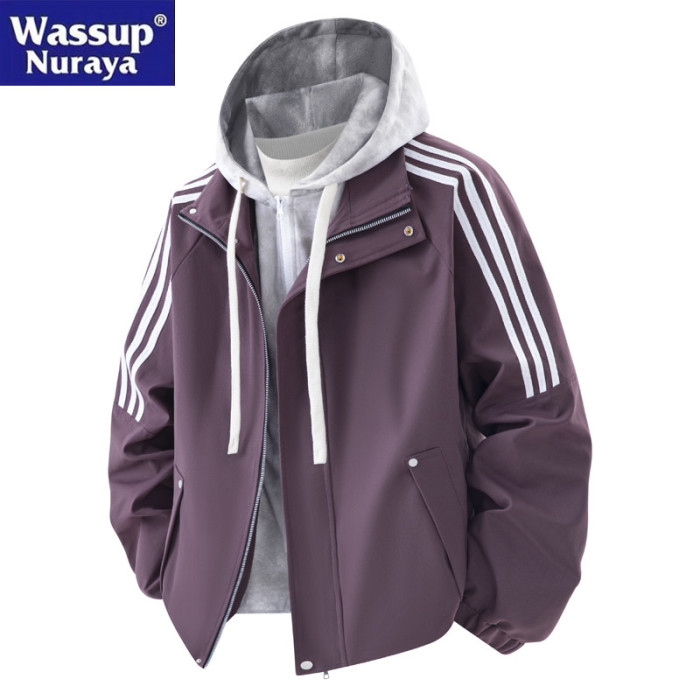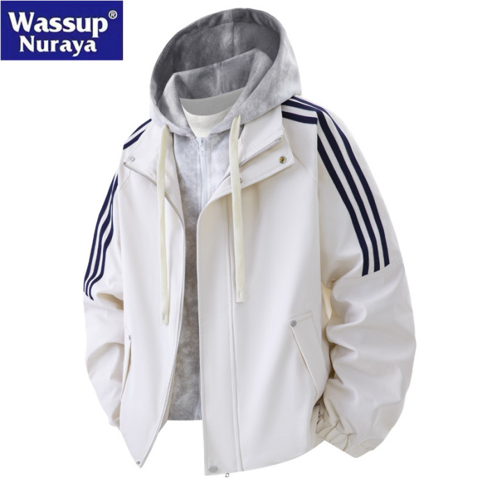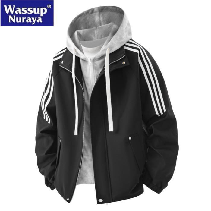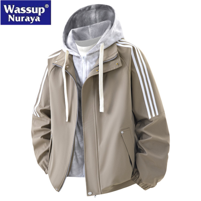 WASSUP Nuraya潮牌假兩件外套男士春秋青年寬松連帽工裝休閒夾克