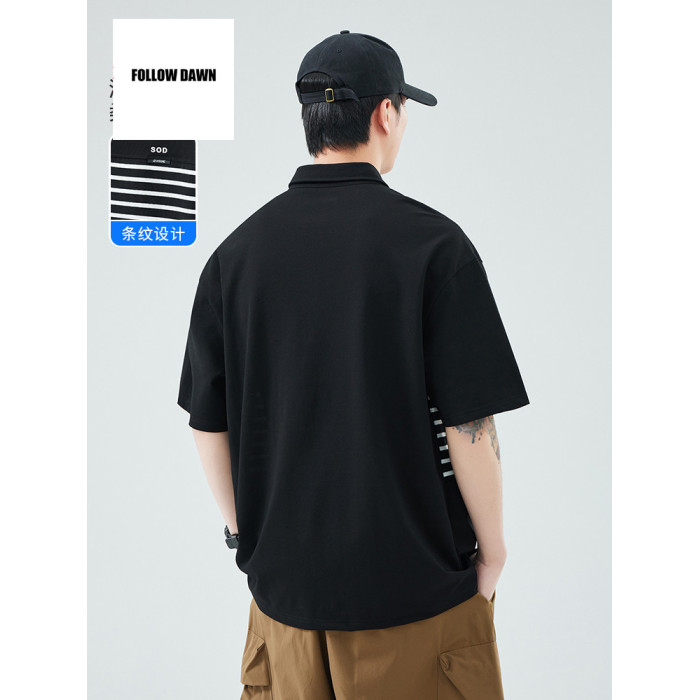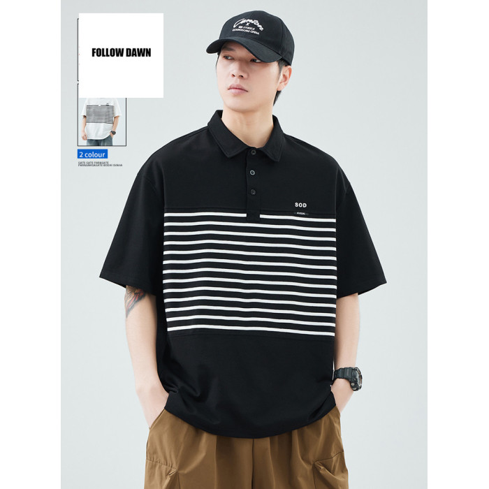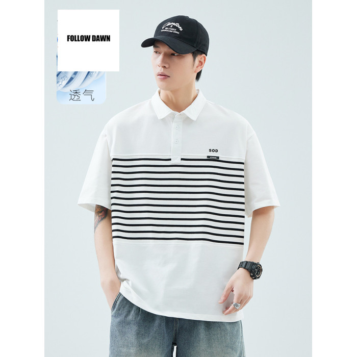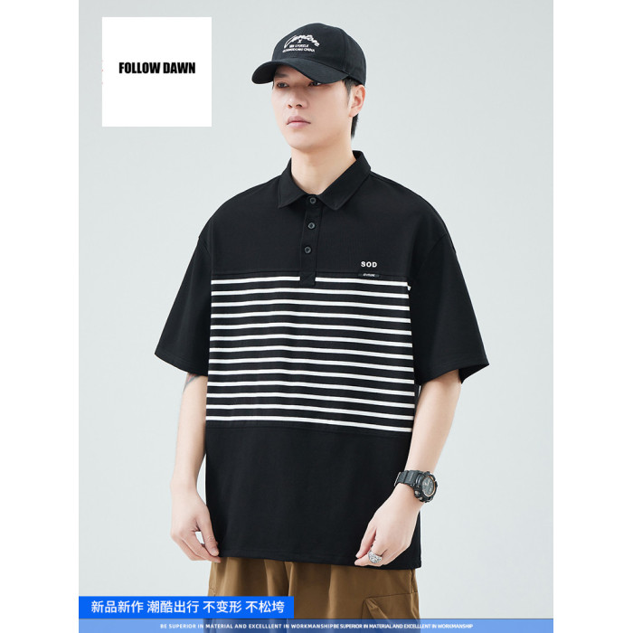 短袖t恤男士夏季寬松休閒翻領商務體恤新款條紋polo衫男