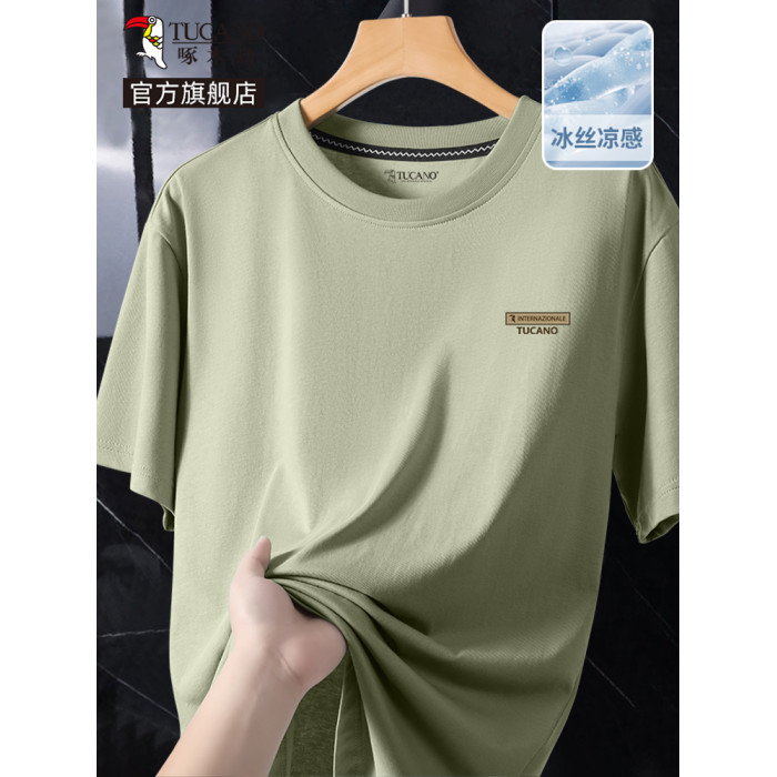 啄木鳥男士t恤短袖2025新款夏季冰絲速乾半袖男款寬松大碼半截袖Y