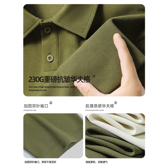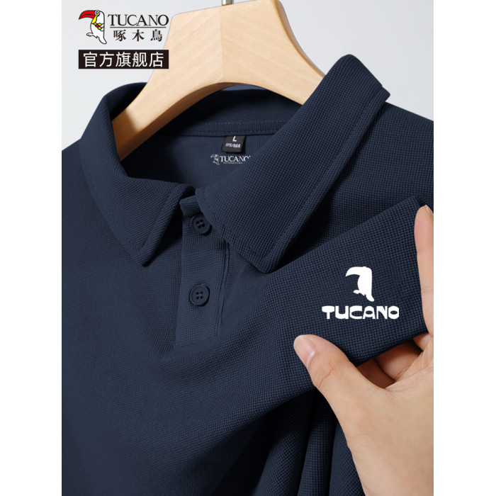啄木鳥高級感商務休閒polo衫男短袖夏季華夫格翻領T恤男士襯衫YB