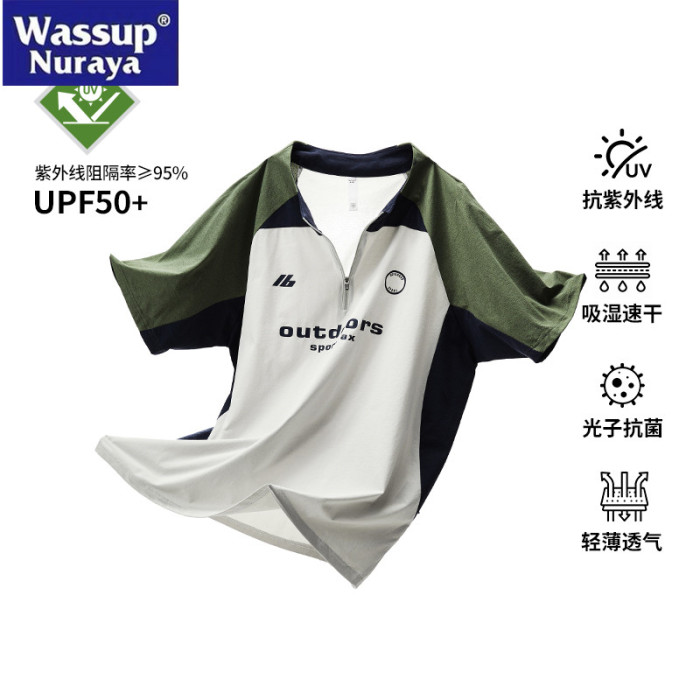 WASSUP Nuraya潮牌夏季半拉鍊T恤男速乾UPF50+防曬衣冰絲涼感短袖