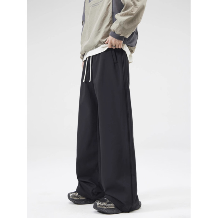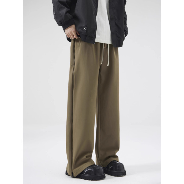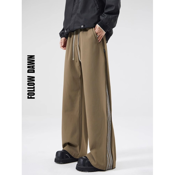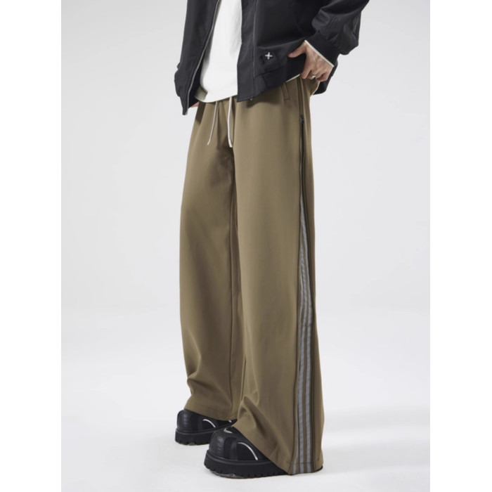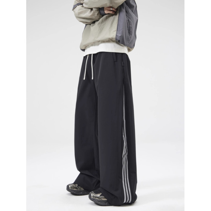 美式側拉鍊休閒褲男2025春季寬松直筒戶外三條杠褲子拖地濶腿褲