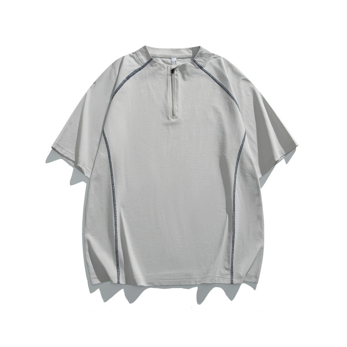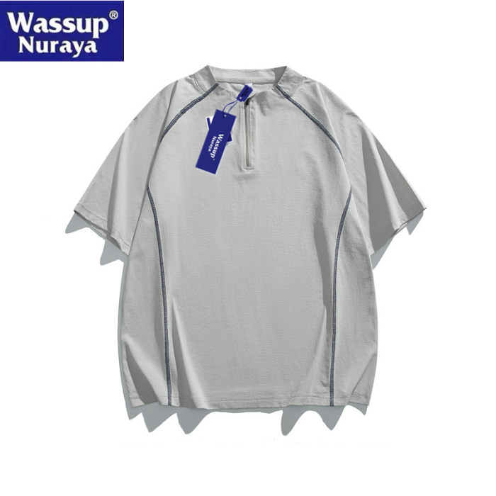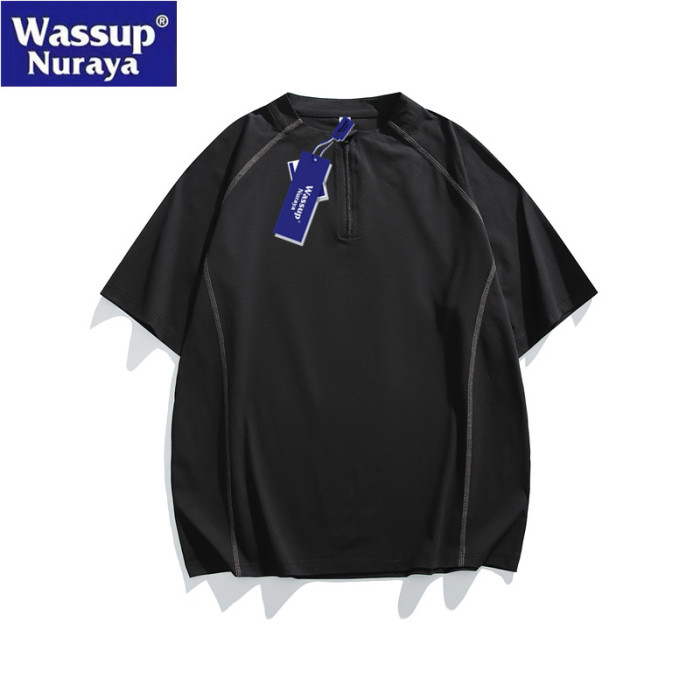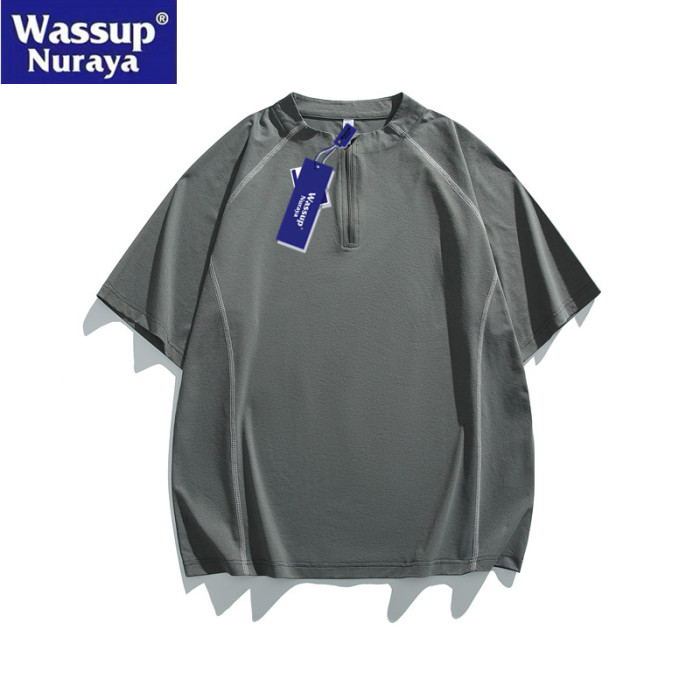 WASSUP Nuraya潮牌美式戶外速乾短袖T恤男夏季半拉鍊圓領運動半袖