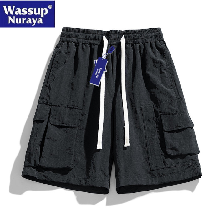 WASSUP Nuraya潮牌冰絲工裝短褲男夏季速乾寬松休閒沙灘五分褲子
